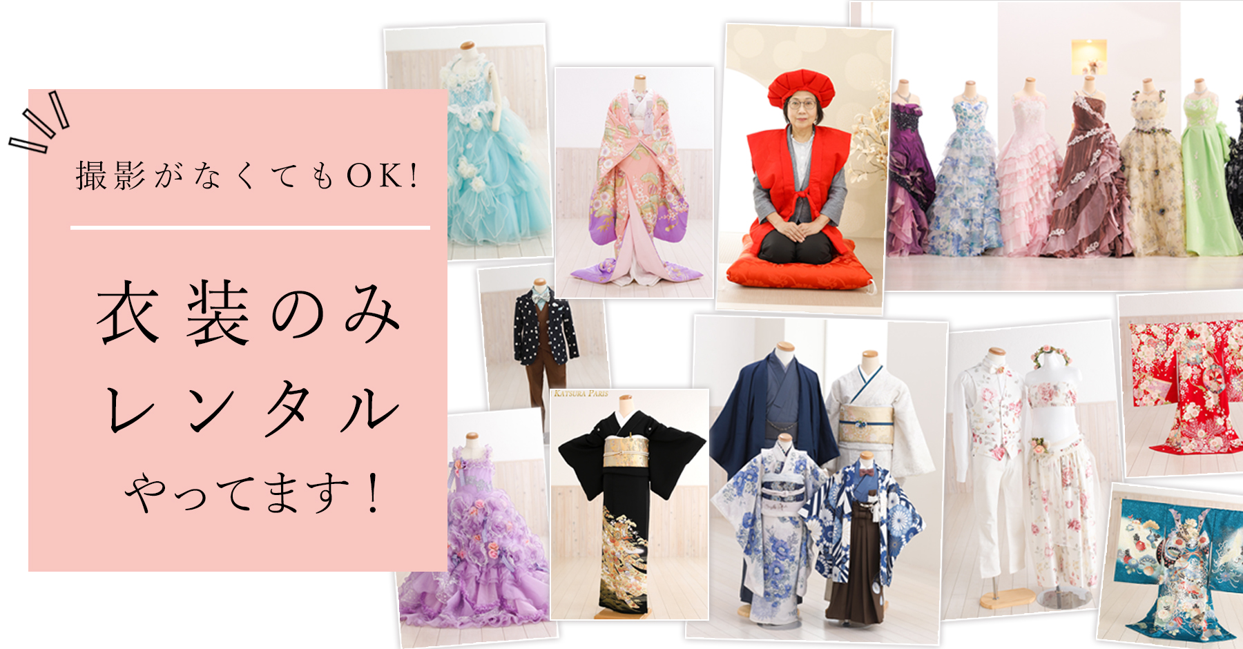 ブランド着物から洋装・オシャレな小物まで、衣装の種類も豊富でレンタルのみも利用可能です。