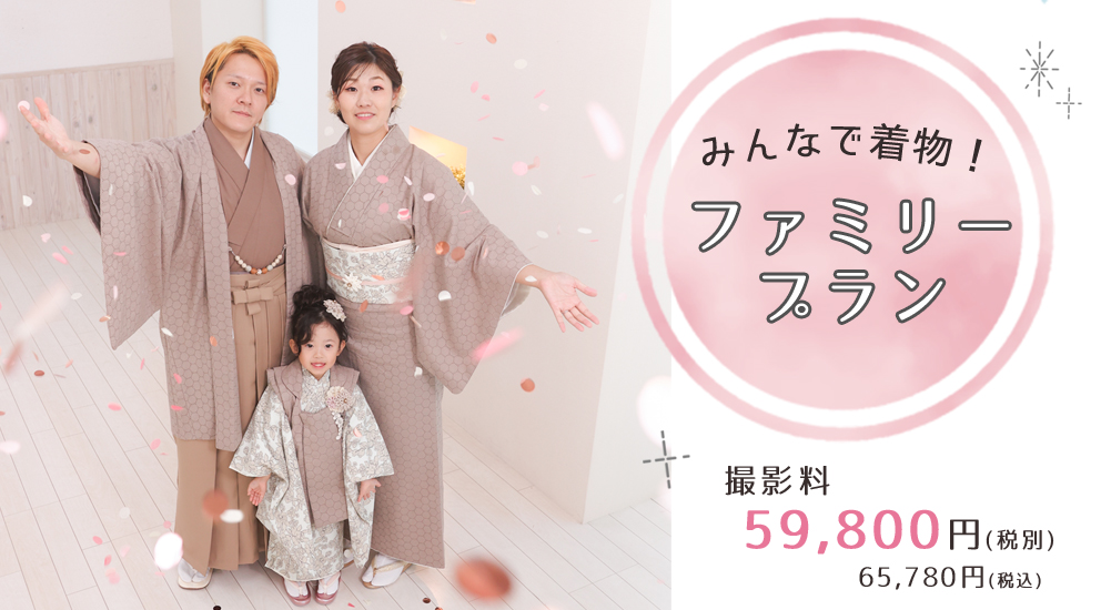 | 備考 | ※七五三対象者に限ります。 ※写真、アルバム、データ料金別途 ※洋装追加オプション料金別途 ※衣装によってはランクアップがございます。 |