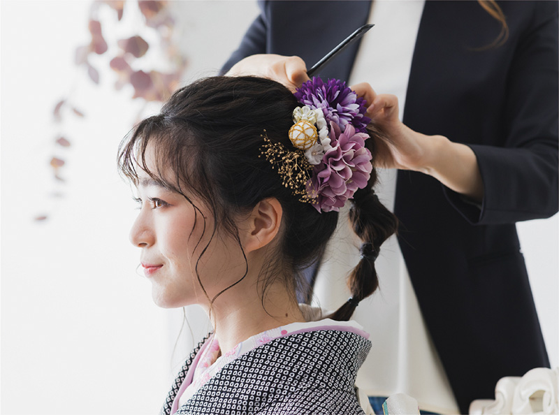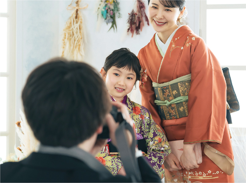 衣装、撮影、ヘアメイク、着付け、レンタルなど、全てが揃う当店だからこそ、すべての人が着たい着物を着て、特別な一日の思い出を残すためのお手伝いをいたします。