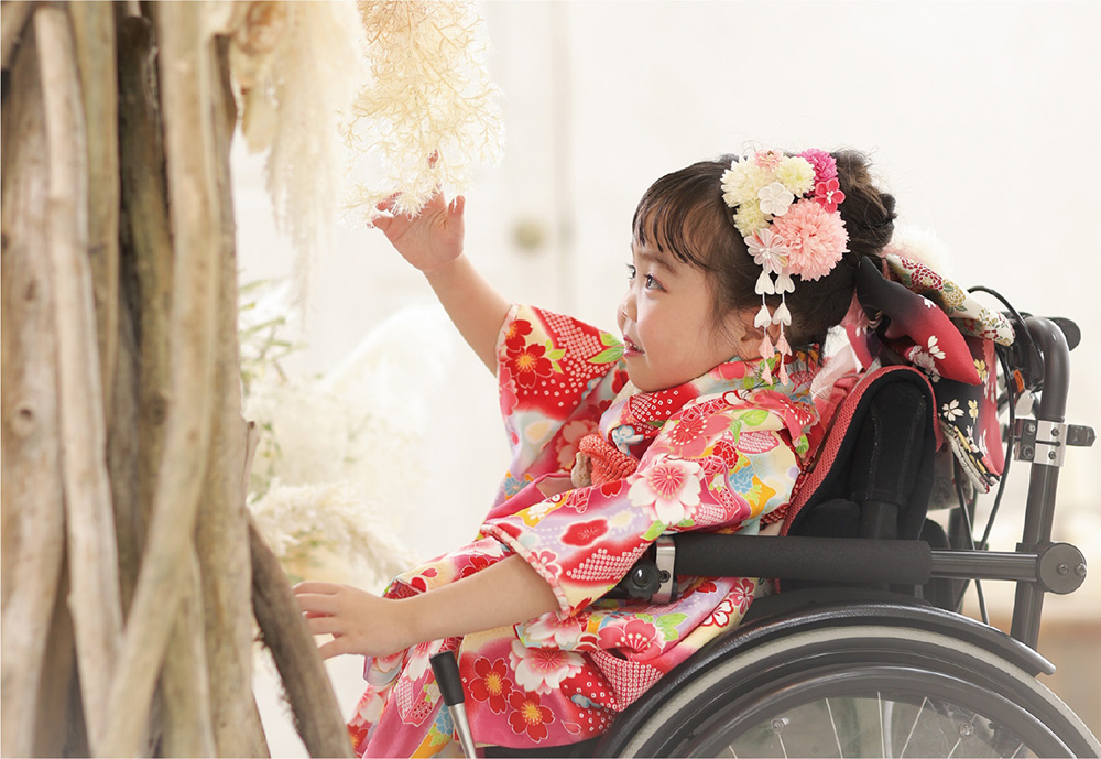 撮影と衣装レンタルが別になってしまったりとなかなか見つからなかったのですが、こちらは車椅子利用者の着付けもしていただき、ヘアセットとメイクと撮影まで全て同じところでできたのが一番良かったです。