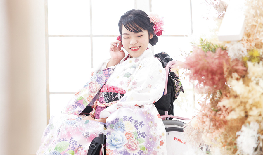 「車いすの人が着られる振袖はありますか?」その言葉から、私たちが今まで当然のように提供していた着物を、車いすというだけで着ることを諦めている人たちがいることを知りました。
